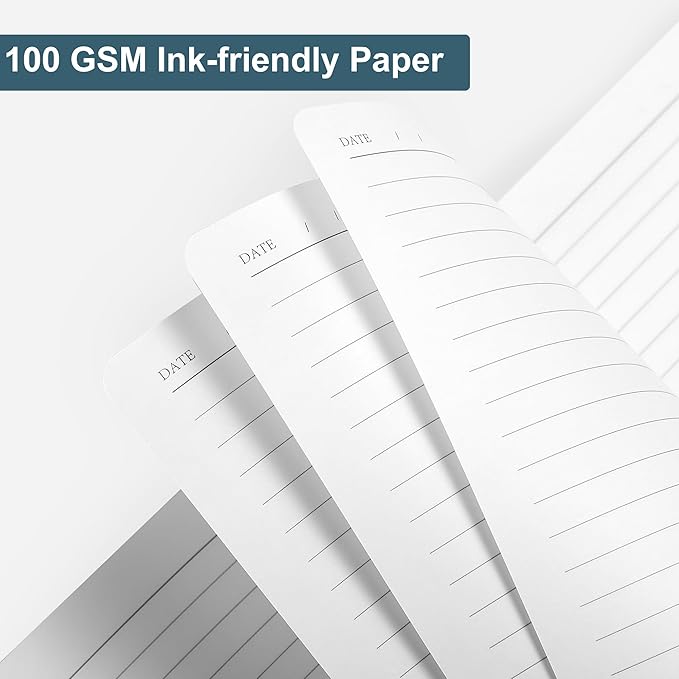 - 320 Pages Paper - Lined journal with 320 pages provides you with enough writing space. A5 notebook with 100gsm paper, thicker than normal paper, will not cause bleeding, ghosting or smudging and is suitable for most types of pens.