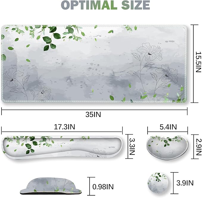 - 【4-in-1 Mouse Pad Set】Ergonomic mouse pad includes desk pad (35x15.5inch), keyboard wrist rest(17.3x3.3inch), mouse wrist rest(5.4x2.9inch), cup coaster(3.9x3.9inch).No need to buy separately, at a super cost-effective price. This desk pad for keyboard and mouse, is large enough to fit your mouse, gaming keyboard, and other desk items. Keep a clean, uncluttered desk. This helps to improve the gaming experience or work efficiency in the office.