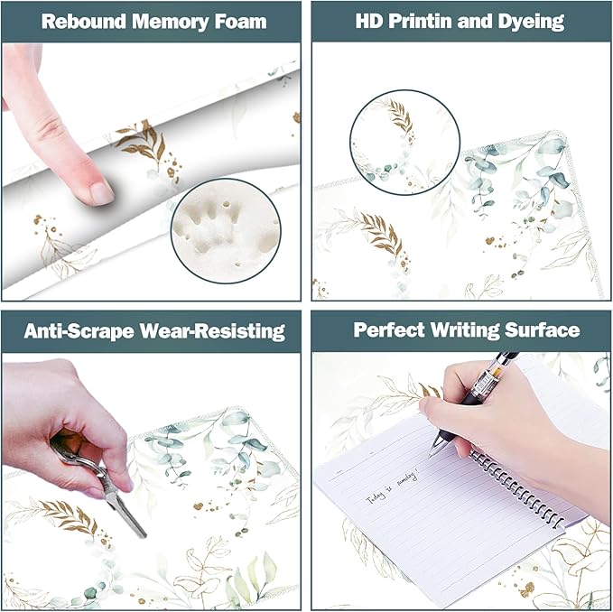 ARTSO Gaming Mouse Pad Wrist Support Set, XXL Large Desk Mat Mousepad + Keyboard Wrist Support+ Mouse Wrist Rest+Coaster 4in1 Ergonomic, Memory Foam, Stitched Edge for Home Office -Pretty Leaves