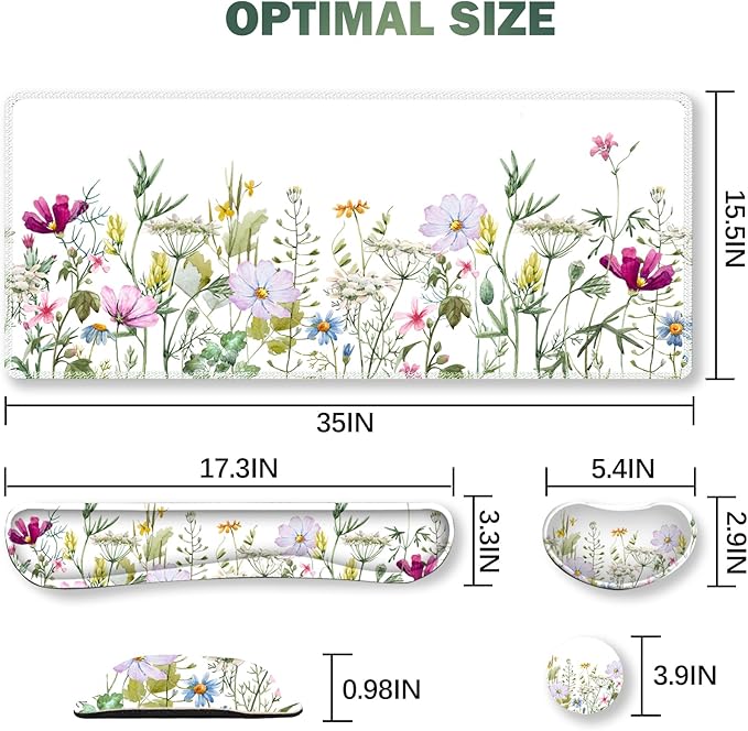 - 【4-in-1 Mouse Pad Set】Ergonomic mouse pad includes desk pad (35x15.5inch), keyboard wrist rest(17.3x3.3inch), mouse wrist rest(5.4x2.9inch), cup coaster(3.9x3.9inch).No need to buy separately, at a super cost-effective price. This desk pad for keyboard and mouse, is large enough to fit your mouse, gaming keyboard, and other desk items. Keep a clean, uncluttered desk. This helps to improve the gaming experience or work efficiency in the office.
