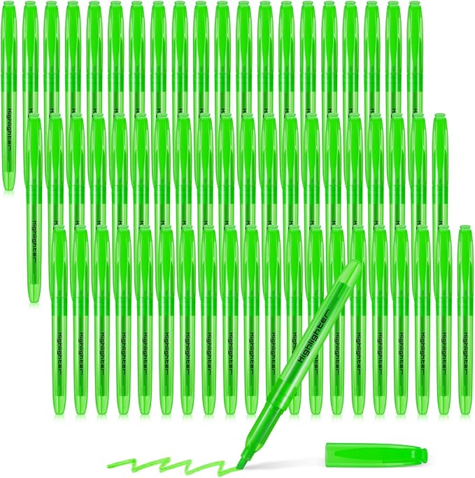 - Package Includes: you will receive 60 green cute highlighters, enough number of highlighters to meet your daily use and replacement needs, very bright green can better help you mark key sentences, highlighting, so you can quickly find the key sentences and key vocabulary when reading