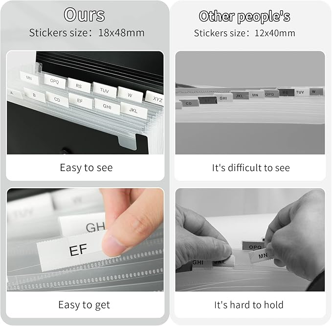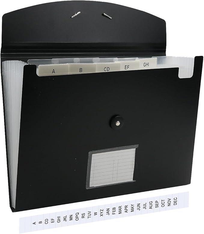 - ✍Practical Design: We've enhanced the elastic string and button closure compared to previous expanding file organizers, ensuring easier handling for users. With its 13 pockets and transparent label design, this folder offers increased security for your internal papers. It efficiently maintains the tidiness and orderliness of your files, beautifully streamlining your daily life.