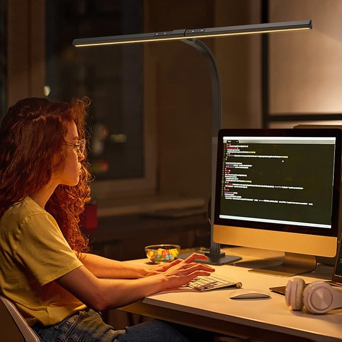 - Auto-Dimming & Memory Function: The effective Auto-Dimmable Setting can self-adjust based on the available ambient light, ensuring that you are at the suitable brightness for reading or working. Just activate the Auto-Setting after you switch on the light, the Built-in Smart Light Sensor will make the lamp automatically dim/brighten the light intensity to match the surroundings, super convenient. The Memory Function will remember the last settings when the power is cut and restored