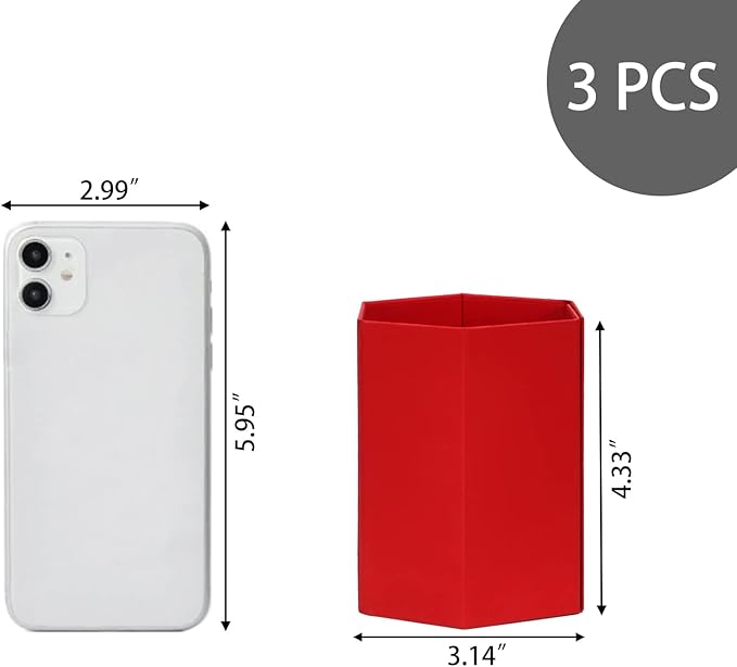 - Friendly and Durable Material:3 pieces set of hexagonal shape pencil cups made of premium thick,sturdy cardboard,safe and nontoxic,environmentally friendly,no fading,no peculiar smell,no deformation,no scratching desk surface.