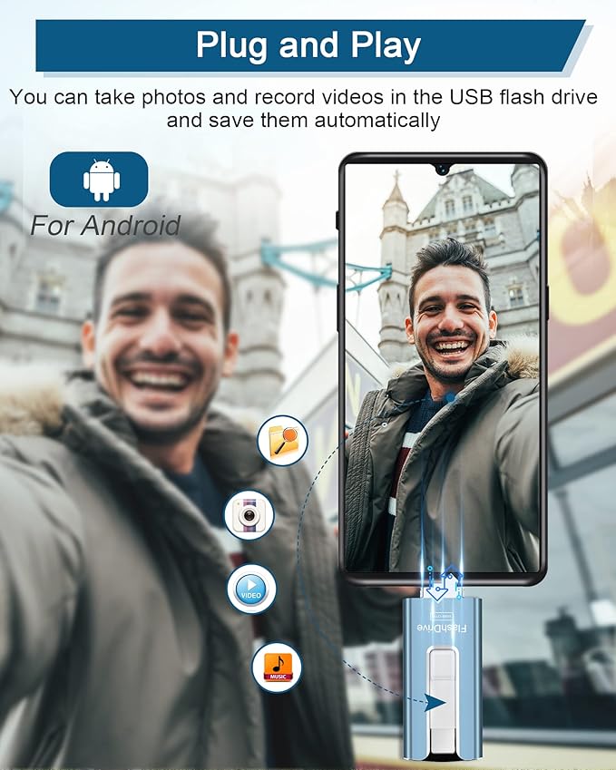 - 【High transfer speed】: Transfer photos, videos, and files in seconds with our USB stick. With a write speed of up to 80 MB/s and a read speed of up to 40 MB/s, our flash drive for phone have higher performance than conventional usb storage flash drive. Save time and get more done with phone photo storage stick. (Tip: Phone/Pad needs to download "LUV-Share" APP from APP Store when using memory stick; Android phone no need to download APP).
