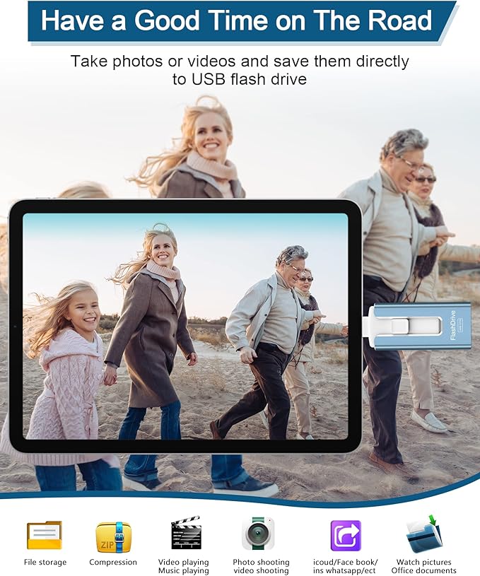- 【High compatibility】: Our thumb drive is designed for use with a wide range of devices, including Phone 14, 14 Pro, 14 Pro Max, 14 Plus, Phone 13, 13 Pro max, 13 Pro, 13 mini, 12 Pro max, 12 Pro, 12, 12 mini, 11 Pro max, 11 Pro, 11, XS MAX, XS, XR, X, 8, 7, 6, 6s, 5s (System Version 8.2 Or higher). The photo stick supports Android smartphones (Need to open OTG function). Our USB storage drives also support computers and other devices with USB ports.