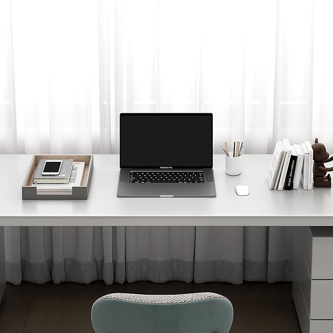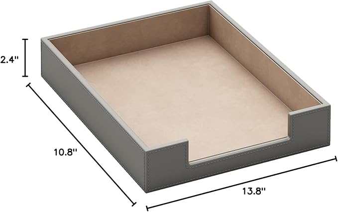 Leather Letter Tray, THIPOTEN Elegant Desk Organizer for Office Supplies, Mail, Paper, File, Magazine, Perfect Office Organization for Desktop(Grey)
