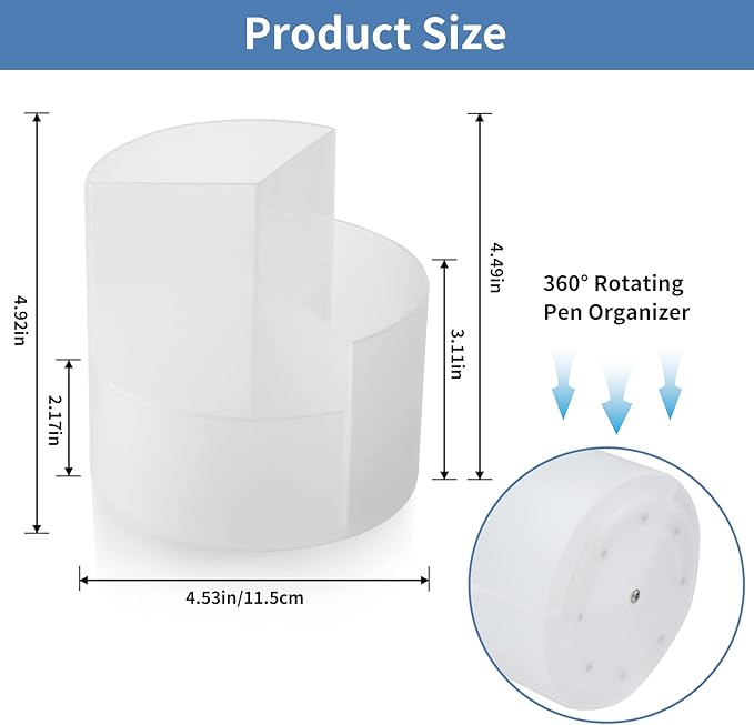 - [360-degree rotatable design] This rotating pen holder can be turned up to 360-degree rotation. It spins smoothly all around without getting stuck. Easy to access, easy to get from any angle. Save time to find your pen or pencils, always keep your desk tidy and organized. And it enables you to improve your working efficiency.