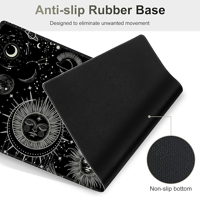 - 【Water-resistant Coating】 This durable desk mouse mat made of a spill-proof coating is easy to clean with a damp cloth, keeping your desk from scratches, stains, spills, heat and abrasion. Delicate double stitched edges protect the office mat set for desk from wear, deformation and safe to use
