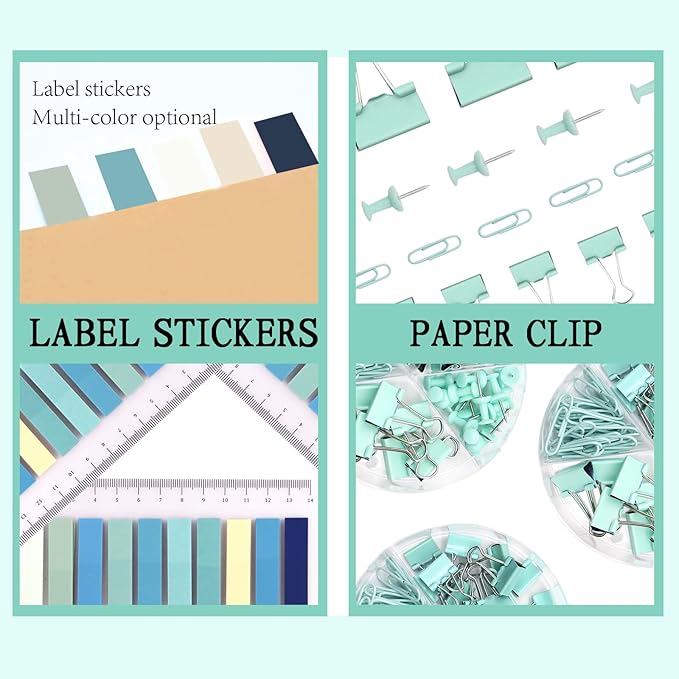 - Easy To Carry- You can put these green desk accessories in the drawer or desk at will, it won't take up too much space. The clips are equipped with a lattice storage box for easy organization use and storage.You can also put school supplies set in your handbag or schoolbag and take them anywhere.