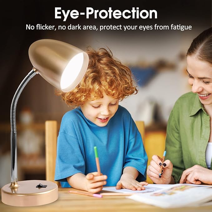 - 【360° Adjust】Flexible gooseneck allows you to adjust the study lamp with ease and direct light to wherever you want. Suitable for bedroom,home office, college dorm, hotel, and etc