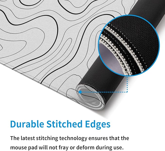 White Big Mousepad for Gaming Large Topographic Map Washable Desk Pad with Stitched Edge Office Supplies and Decor 31.5''x11.8'' Computer Keyboard Protector