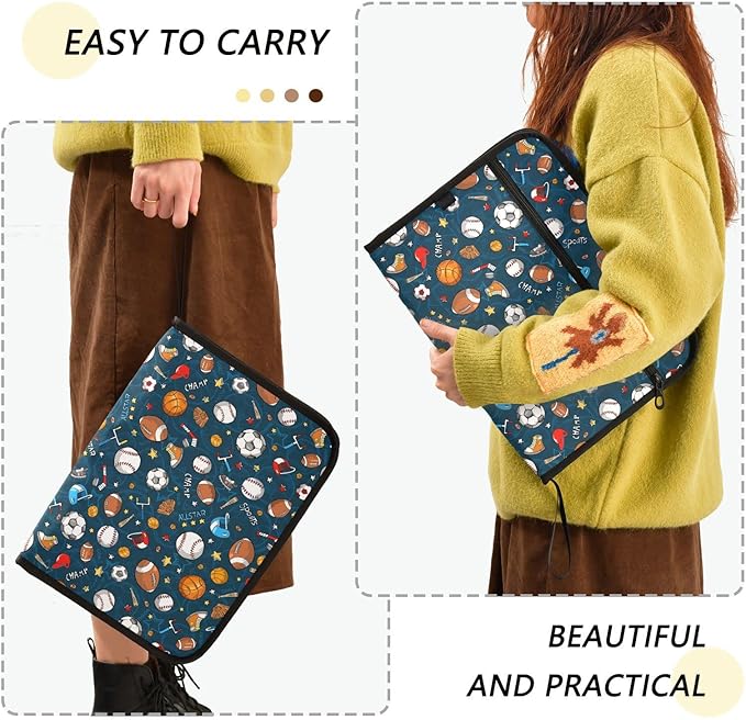 Gredecor Baseball Football Ball Pattern Expanding File Folder 13 Pockets Sports Theme Expandable Filing Folders Accordion Document Files Organizer for A4 Letter Size Paper