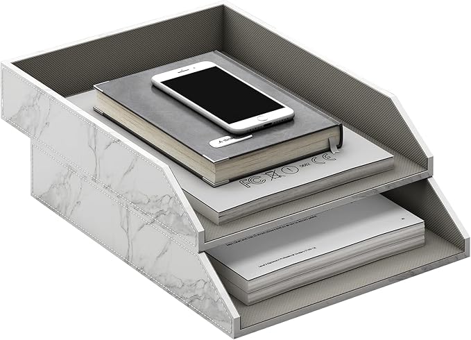 Leather Letter Tray, Thipoten Stackable Desk Organizer Holder for Office Supplies, Paper, File, Magazine, Perfect Office Organization for Desktop (White)