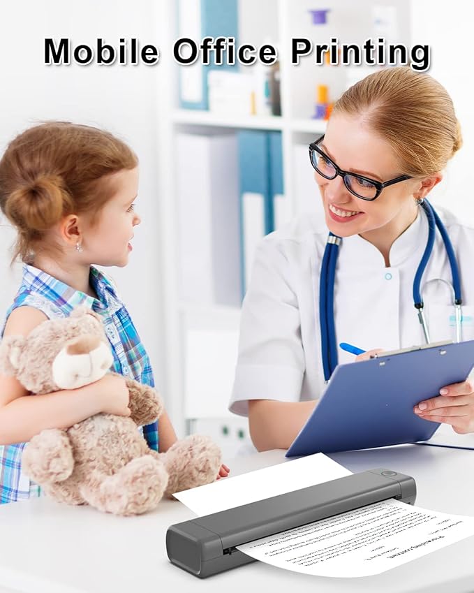 - [Compact and Space-saving Design] - Portable printer weighing just 2lb and only 1.5in thick, able to fit in your bag or briefcase for easy transporting and surprisingly light for long commute times. Our travel printer great concept for On-site printing from anywhere needed, like if traveling for work, business, office, home, car, or university for example