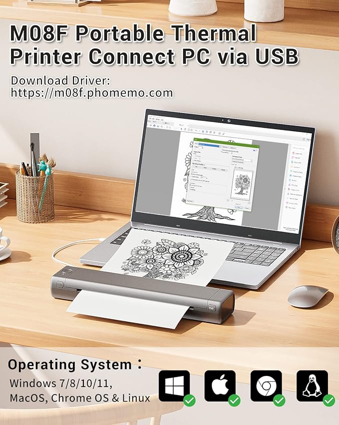 - [Strong Compatibility] - Print PDF, Word, Images, Web from your phone—whenever, wherever. You can also use a USB cable to connect for computer printing; (PC devices only work with USB connection, need to download the driver first: m08f.phomemo.com)