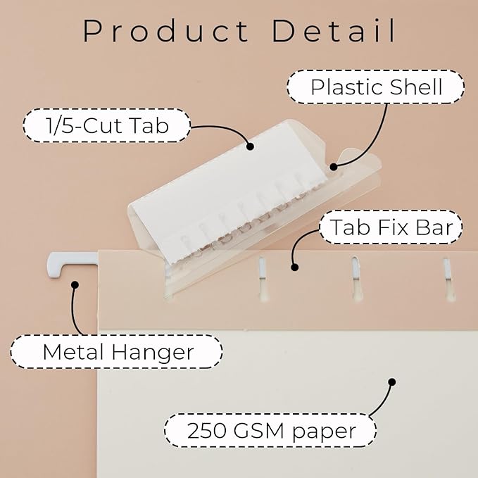 - Sorted Tabs - Each hanging folder features a 1/5-cut custom tab for hassle-free organizing and access to documents. Our pretty hanging folder can store bulky files, medical charts, or product manuals and keep files separate
