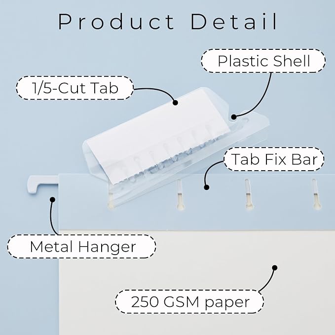 - Sorted Tabs - Each hanging folder features a 1/5-cut custom tab for hassle-free organizing and access to documents. Our pretty hanging folder can store bulky files, medical charts, or product manuals and keep files separate