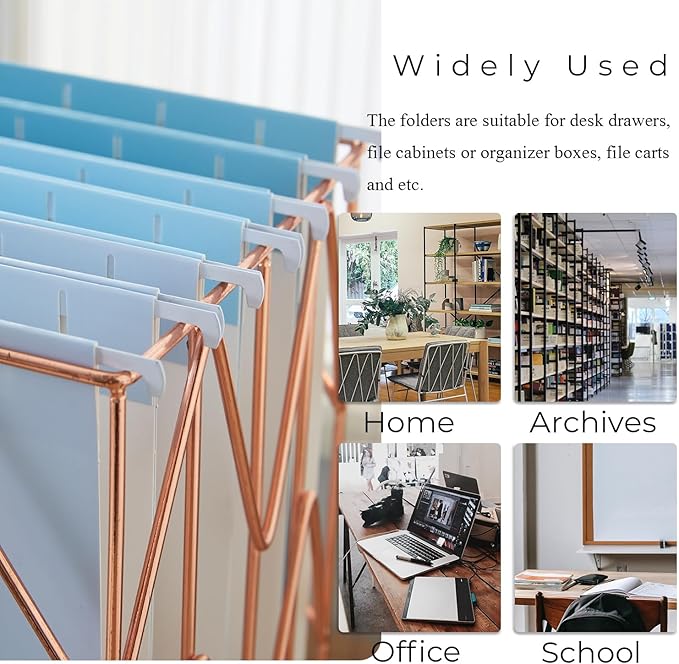 - Folder Dimension - Top metal bar's length is 12.75”, file folder size is 11.7" W x 9.3" H. You will receive 6 Gradient folders(3 Lake Blue x 2) + 6 customized plastic tabs. For further problem, please feel free to contact us