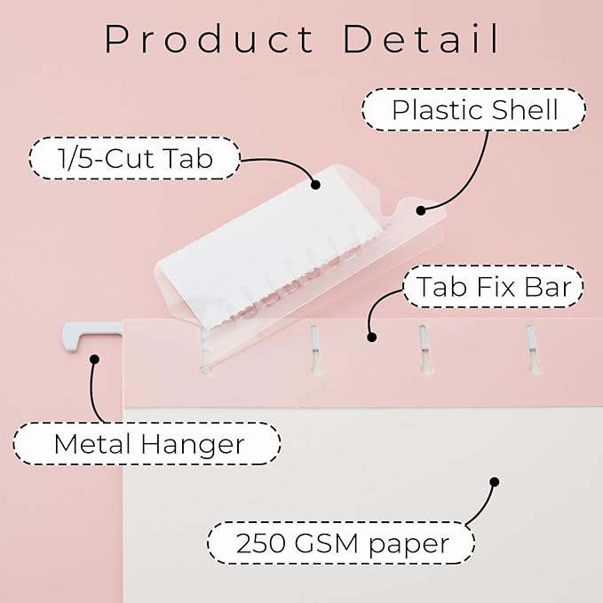 - Sorted Tabs - Each hanging folder features a 1/5-cut custom tab for hassle-free organizing and access to documents. Our pretty hanging folder can store bulky files, medical charts, or product manuals and keep files separate
