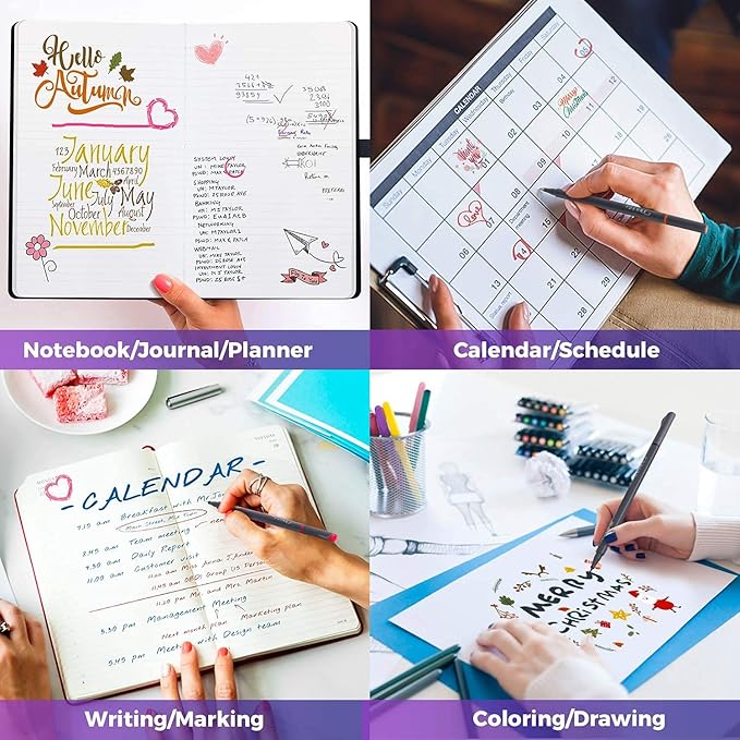 - WELL PACKAGE --- Our fine line pens come in a nice plastic storage case with fold over snap closure which can be easily placed in backpacks. For using in travel or used in the home . planner or journaling supplies for Christmas, Birthday, Mother's Day, Easter Day, Valentine's Day, Thanksgiving Day, Party, New Year's.