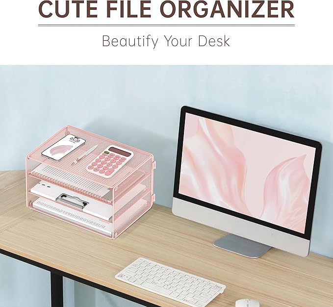 - 3-Tier Design: "Daltack" simple and stylish pink desk organizer, keep your desk organized in a different new way with our paper organizer for desk.