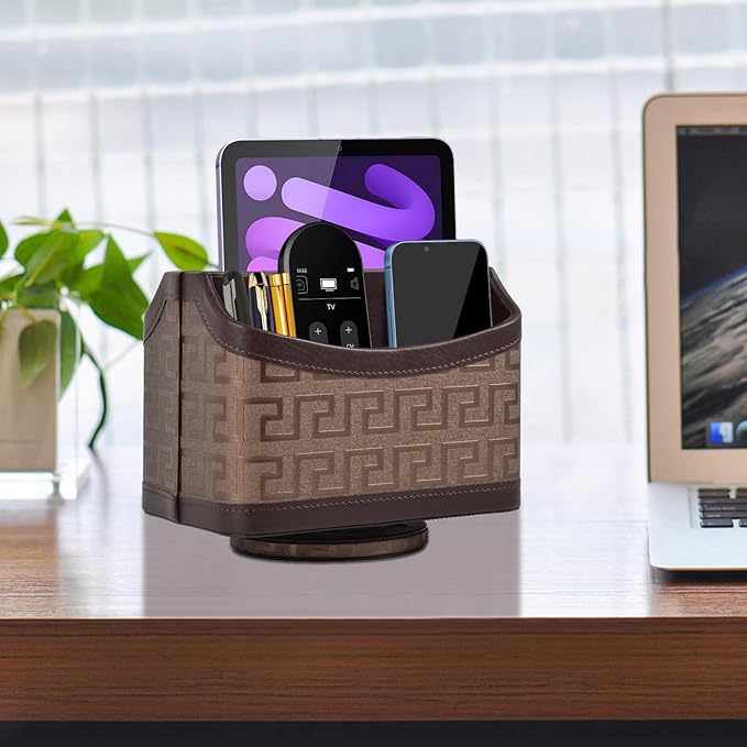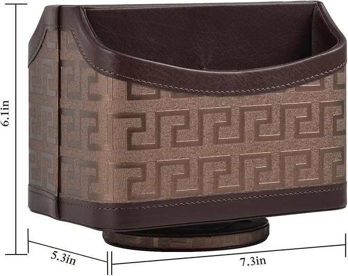 - MODERN DESIGN:covered in brown PU leather with delicate stitching to keep your home office decor looking stylish as a spin organizing box