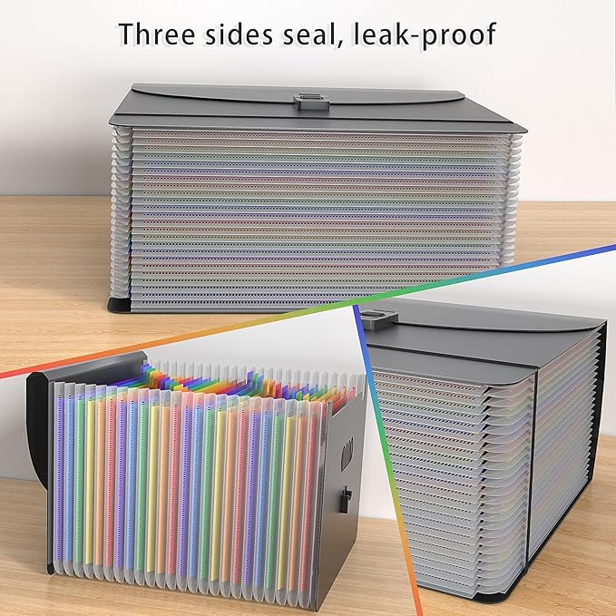 - 【Extra Large Storage Capacity】: Standing without closing the lid,the accordian file organizer holds up to 3000 sheets of paper total, and it provides 25 individual pockets for reliable partitioning. The pockets are tabbed to allow for adding handwritten labels, ensuring each section can be instantly identified for quick access. Each pocket offers a generous amount of space, expanding to 1 1/8 inches. From homework assignments to presentation documents or household records and receipts, the expandable file folder has you covered