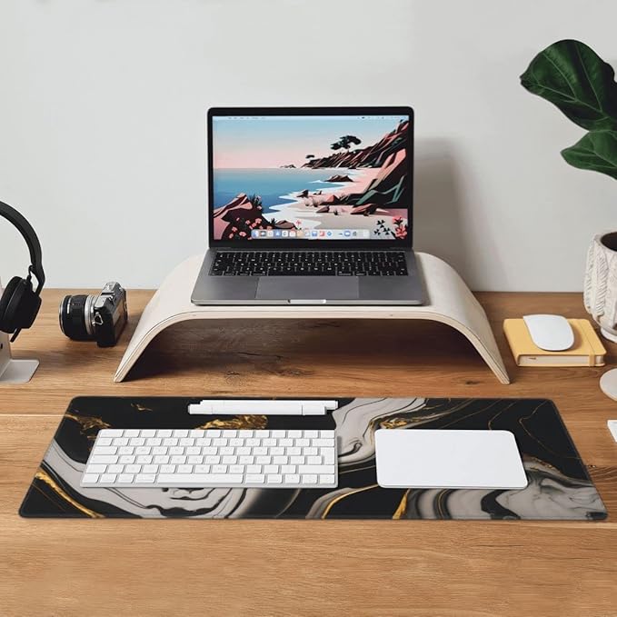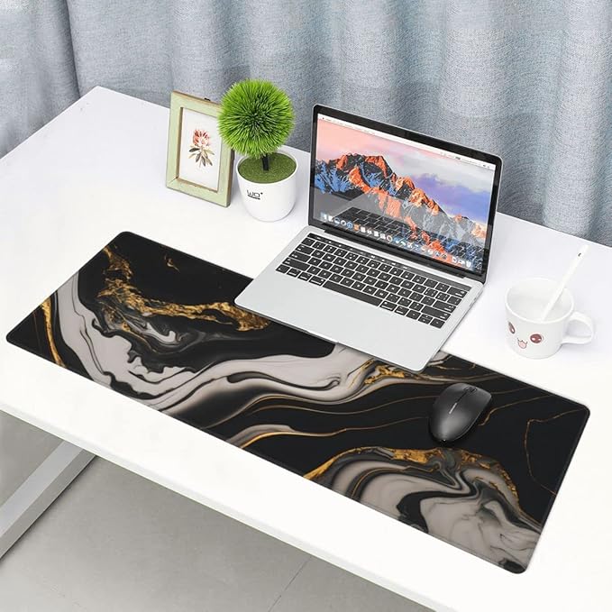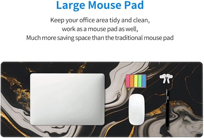 Desk Pad,Office Desk Mat 31.5"×11.8" Large Gaming Mouse Pad,Durable Extended Computer Mouse Pad,Waterproof Thick Big Mouse Pads with Non-Slip Rubber Base Office Home Black Gold Marble