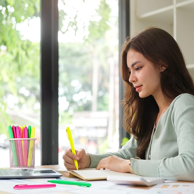 - Chisel Tip Highlighter Pens: aesthetic cute highlighters create thick and thin lines, nice for highlighting and underlining; Highlighters pens are ideal for stocking up as office supplies or school supplies for teachers and office staff, achieving convenient distribution and storage