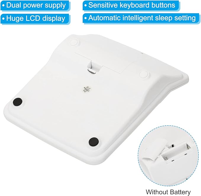 - Advantage: The plastic keyboard buttons are very sensitive, and the large buttons are designed to prevent you from hitting the wrong button. The huge LCD 12 digits display calculator clearly displays big numbers making it easier to read. This desktop calculator has an automatic intelligent sleep setting, which saves a lot of power very much. Dual power supply, even if the battery power is run out, as long as the solar panel energy is charged in the light, it can be used.