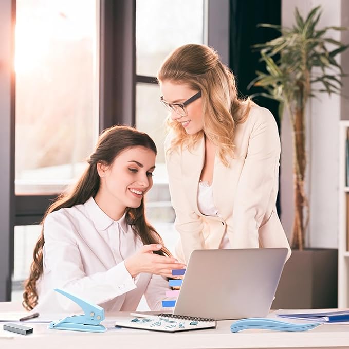 - Package Includes - This blue office supplies contains 1x Stapler, 1x Magnetic Staple Remover, 1000x Staples, 1x Tape Dispenser, 1x Single Hole Punch,4x Bulldog Clips 4x Small Clips 2x Hollow clip 2x Big Clips 70x Paper Clips and 10 colors Tabs with ruler. Beautiful and lovely blue desk accessories combination can meet your daily office and study needs.