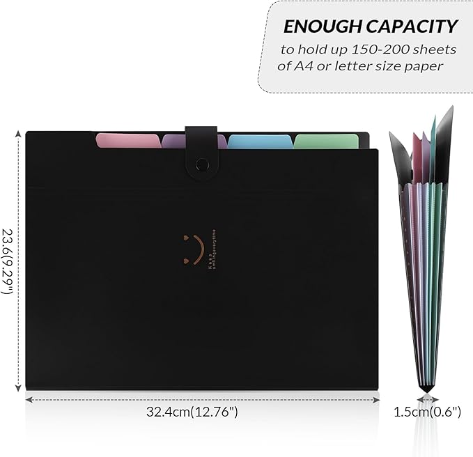 - Folder Size: 12.8'' x 9.5'' x 0.7''. This size makes it ideal for standard, letter-sized sheets of paper. Fix maximum 150-200 pages. Sturdy and Portable.