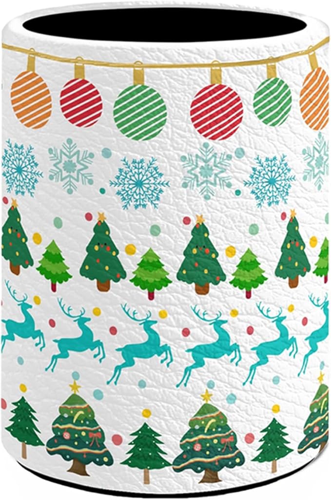 Christmas Pen Holder Pencil Organizer Cute Pencil Cup Desk Decor Makeup Brush Holder PU Multifunctional Office Suppliesfor Home Classroom School