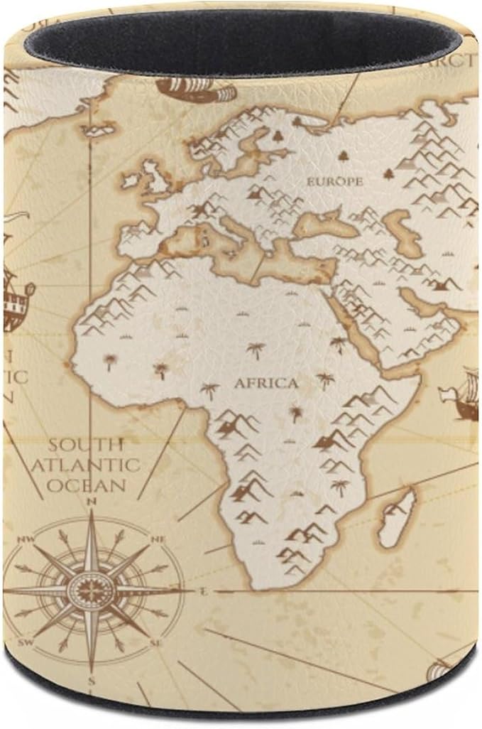 Vintage World Map Pen Holder Pencil Organizer Cute Pencil Cup Desk Decor Makeup Brush Holder PU Multifunctional Office Suppliesfor Home Classroom School
