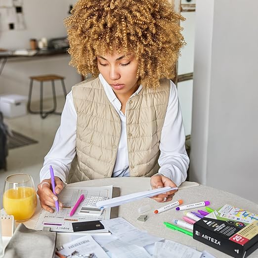 ARTEZA Gel Highlighters and Black Pens – 24-Pack with Sharpener, Smudge-Free, No-Bleed, for Thin Pages, Journaling, Note-Taking, School and Office Use