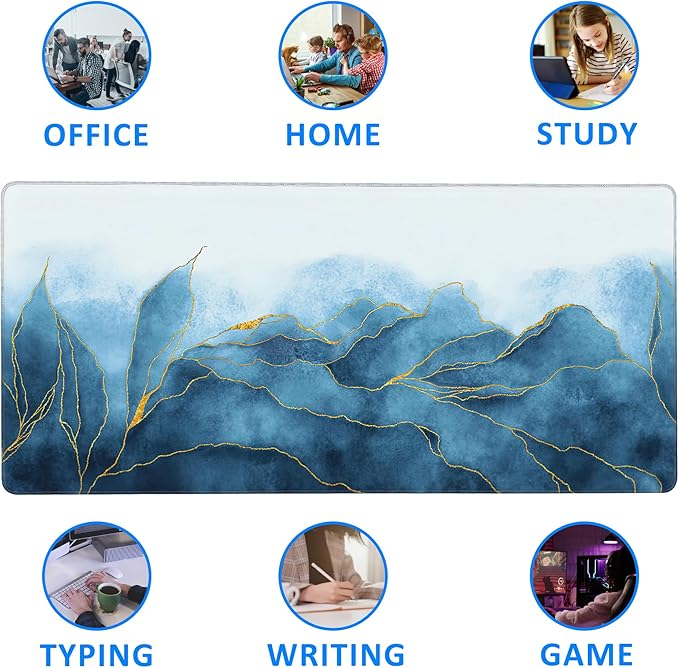 Large Mouse Pad Extended Gaming Desk Mat Abstract Blue Marble Gaming Office Home Mousepad Keyboard Mouse Mat,Non-Slip Rubber Base 35.4x15.7 Inch Mousepads