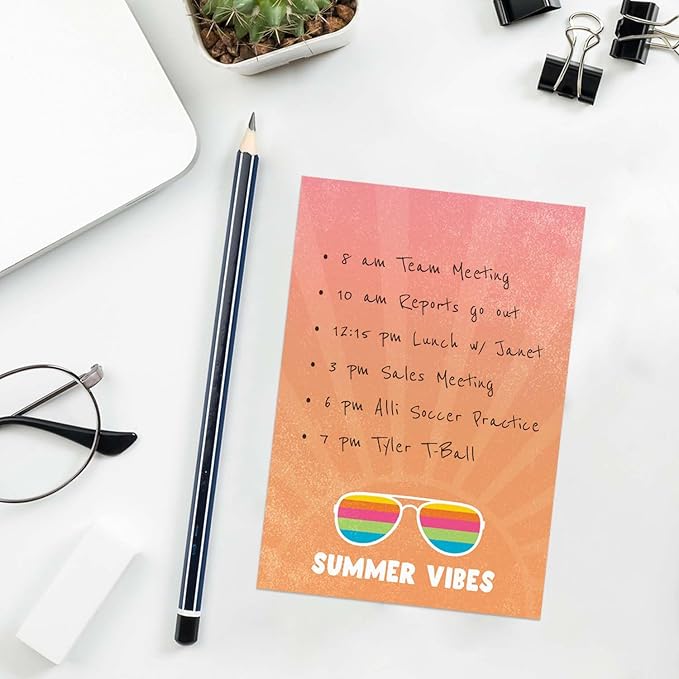 - Unique Designs: These bright and colorful sticky note pads with 5 beachy designs will make organizing your summer days so much more fun! Includes phrases such as, "Summer Vibes", "Keep Cool", "Time To Chill", "Sip Into Summer" and "Hello Summer".