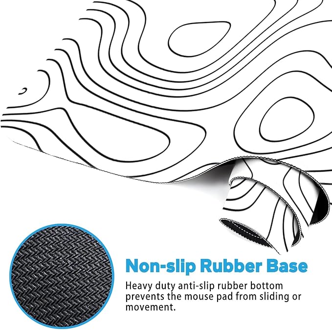 Britimes White Abstract Topographic Map Large Mouse Pad Non-Slip Desk Pad Keyboard and Mouse Desk Mat Gaming Mousepad for Game,Office & Home,31.5 x 15.7 in