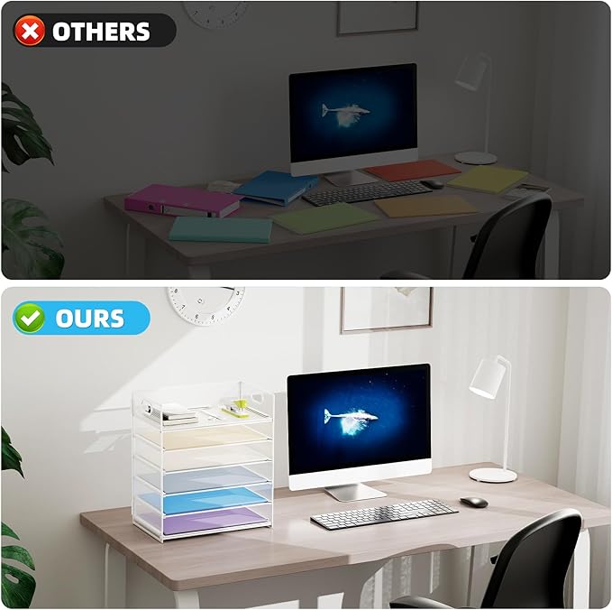 - 【MULTI-PURPOSE ORGANIZER】6-tier layered design and large capacity make the paper organizer become an ideal choice for managing all kinds of letter-size letters, paper, books, bills, etc. Let you quickly identify the contents of each compartment super easy