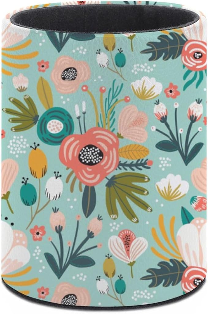 Mint Flowers Pen Holder Pencil Organizer Cute Pencil Cup Desk Decor Makeup Brush Holder PU Multifunctional Office Suppliesfor Home Classroom School