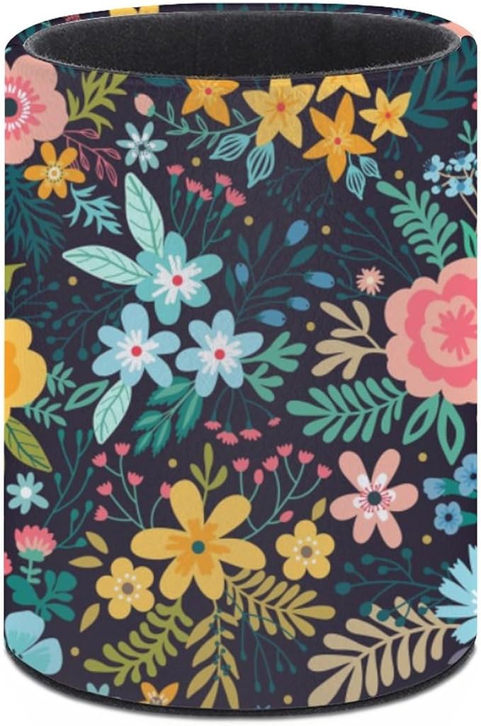 Flowers Floral Pen Holder Pencil Organizer Cute Pencil Cup Desk Decor Makeup Brush Holder PU Multifunctional Office Suppliesfor Home Classroom School