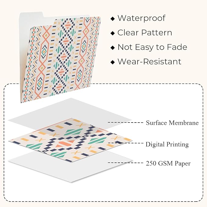 - Heavyweight Material - Decorative file folders are made of 300 GSM recycled paper. Surface membrane technology makes the digital printing pattern of pretty file folders not easy to fade, waterproof, and more wear-resistant