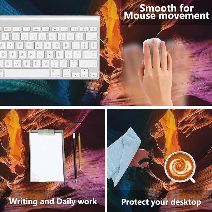 MIOAOSRT Desk Mat,Colored Rock Formations Extended Gaming Mouse Pad,Large Non-Slip Rubber Base Mousepad with Stitched Edges,Waterproof Mouse Mat Desk Pad for Office Game Home 35.4x15.75 in