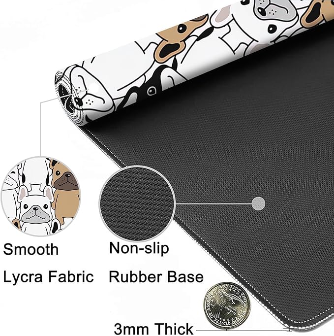 MIOAOSRT Cute Puppy Pet Desk Mat,French Bulldog Extended Gaming Mouse Pad,Large Non-Slip Rubber Base Mousepad with Stitched Edges,Waterproof Mouse Mat Desk Pad for Office Game Home 35.4x15.75 in