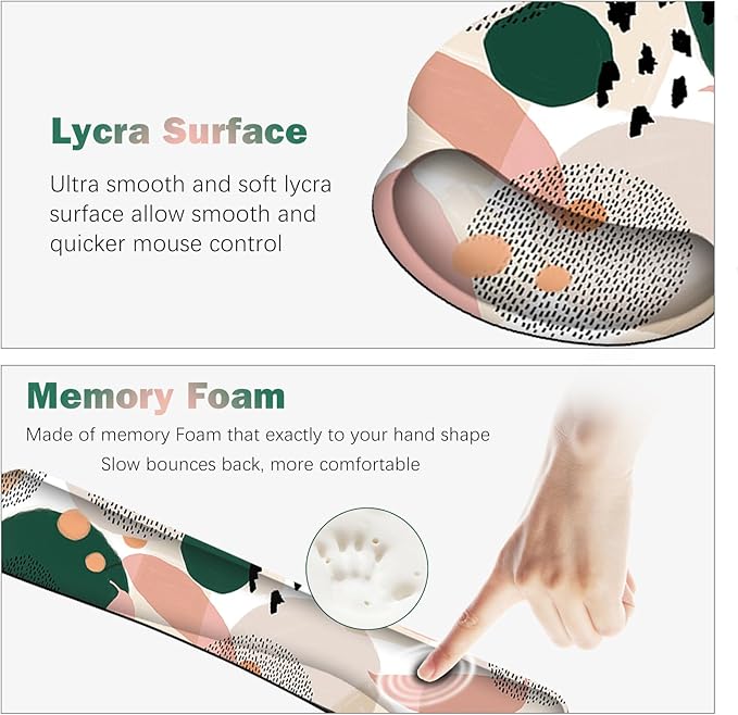 - 【Ergonomic Design】Designed with memory foam and soft smooth material to the pads, lightweight comfortable and durable for your daily work life. This gaming mouse pad wrist support set is contoured ergonomically to keep arms, wrists, and hands from getting sore while working and gaming for long periods of time, maximum reduce wrist stress and tiredness.
