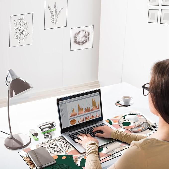 ARTSO Desk Mat, Large Gaming Mouse Pad Wrist Support Set, Ergonomic Keyboard Wrist Rest Desk Pad with Coaster Combo, Extended Mousepad with Non-Slip for Home Office, Abstract Point