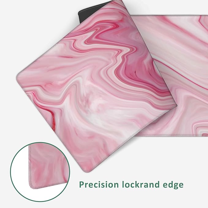 Large Mouse Pad Pink Marble Texture Extended Gaming Mouse Pad Non-Slip Desk Mat with Stitched Edge Laptop Computer Keyboard Mousepad for Office Home 35.4" x 15.7"