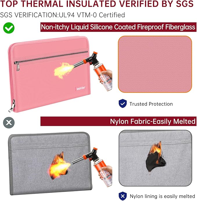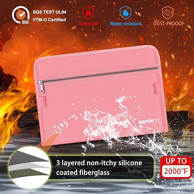 - High-Quality Materials: Protect your files with ENGPOW fireproof accordion file folder.It is made of non-itchy silicone-coated fiberglass which withstand the temperature up to 2000℉.It has been passed by SGS TEST(UL94 VTM-0 Certified).Fireproof File Folder is fireproof&Water-resistant,which can effectively protect your important documents in a fire,flood,and wet weather. They will further keep your files intact.Giving you time to save your important documents when disaster strikes.