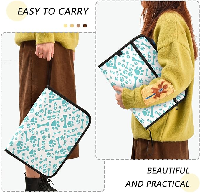Gredecor 13 Pockets File Folder Organizer A4/Letter Water Resistant Sky Blue Dog Bone Paw Document Bag with Zipper Filing Folder Expanding File Pouch Storage for School Office